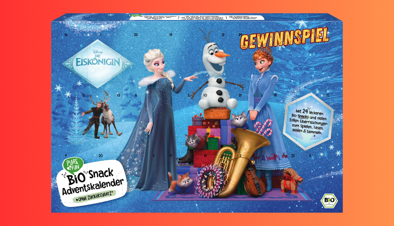 Wenn ich an Adventskalender denke, dann sehe ich vor meinem inneren Auge meist Schokoladen-Täfelchen oder bunte Papiertürchen mit Mini-Pralinen. Aber dieses Jahr setzen wir noch einen drauf – denn der PURE&FUN Bio Adventskalender „Eiskönigin Zauber“ bringt nicht nur Snacks, sondern auch jede Menge Spiel-, Lese-, Mal- und Sammelfreude in die Vorweihnachtszeit.