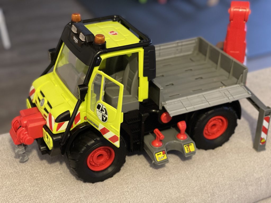 Mit 300 PS unter der Motorhaube ist der Unimog U 530 das größte und leistungsstärkste Modell der Geräteträger von Mercedes-Benz und sorgt auch bei Kindern für Faszination. Die Spielzeugversion von Dickie Toys ist dabei nicht minder beeindruckend: das 50 Zentimeter lange Kraftpaket kommt mit Funktionen daher, die lange Spielstunden garantieren. Die Forstmaschine besitzt einen Kranarm, der über Stickcontroller am Fahrzeug bedient wird. Damit können die Holzstämme kinderleicht auf die Ladefläche platziert und abgeladen werden. Dank der batteriebetrieben Frontseilwinde und der Pendelachse können Situationen realitätsnah nachgespielt werden. Abgerundet wird das Spielzeug mit Licht- und Soundeffekten.