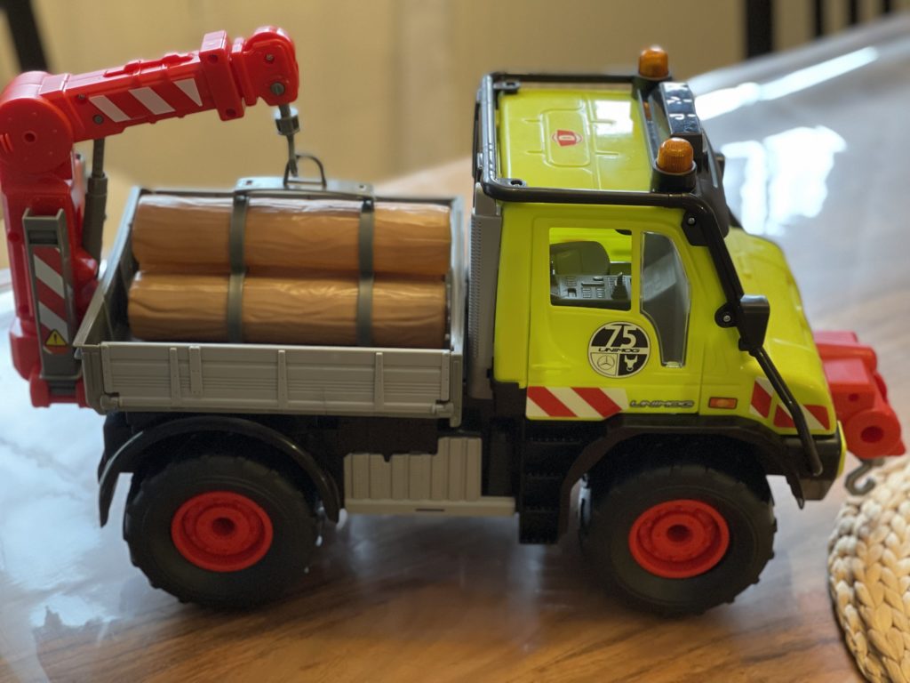 Beim Auspacken des Paketes war schon klar „Wow, das ist ein großer Truck“ ! Das bestätigte sich auch umgehend. So ist der Mercedes Holzlaster 50cm lang. Der Unimog kommt mit sehr vielen beweglichen und elektrischen Teilen sowie mit einigen tollen Sounds.